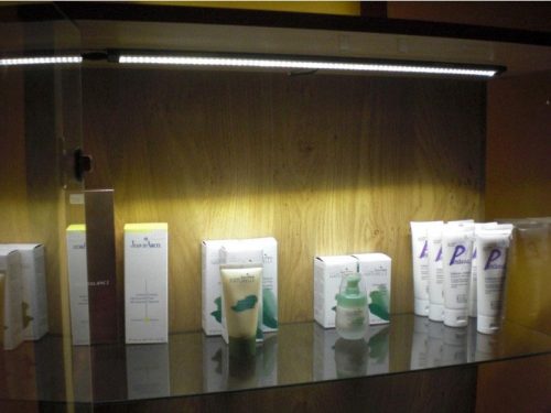 Cabinet lights illuminate cosmetics